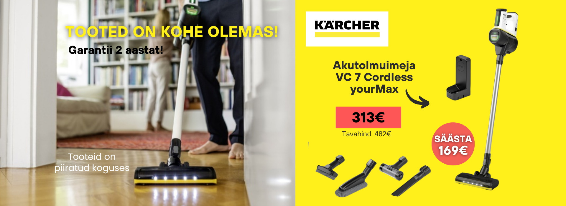 Akutolmuimeja VC 7 Cordless yourMax ühendab võimsa BLDC-mootori, nutika tolmuanduri ja kuni 60-minutilise tööaja. Kerge, kotita ja ergonoomiline seade muudab kodu puhastamise kiireks, mugavaks ja tõhusaks.
